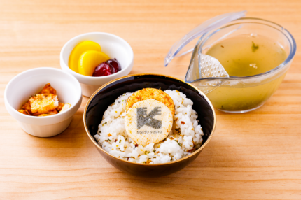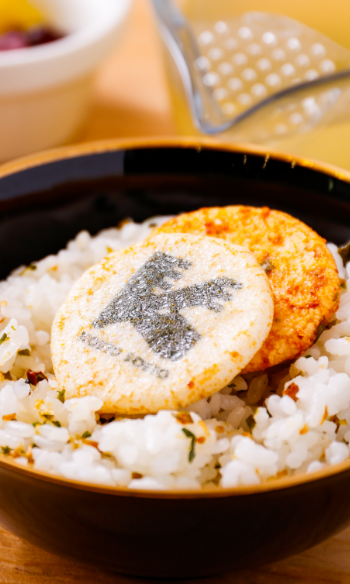 煎餅を焼くときにでる“かけら“をただ捨てるのはもったいない。その想いから生まれたおにぎりとお茶漬けです。