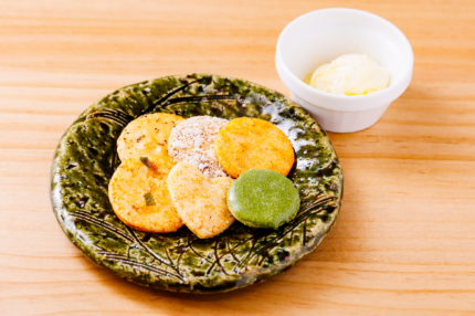 香ばしいひとくちおせんべいに、特製のディップソースを添えて。